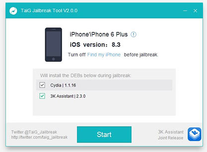 - قم بتشغيل أداة TaiG و تأكد أن الكمبيوتر لا يزال متصل بالانترنت و الآي تيونز مغلق.