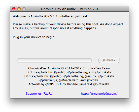 الآن وبعد انتظار شهور منذ صدور أخر جيلبريك غير مقيد وكان للإصدار 5.0.1 ، أعلن اليوم عن صدور النسخة رقم 2.0 من الأداة الشهيرة Absinthe والتي جعلت الجليبريك متوفر بشكل غير مقيد لنظام iOS 5.1.1.